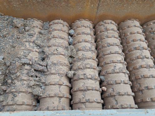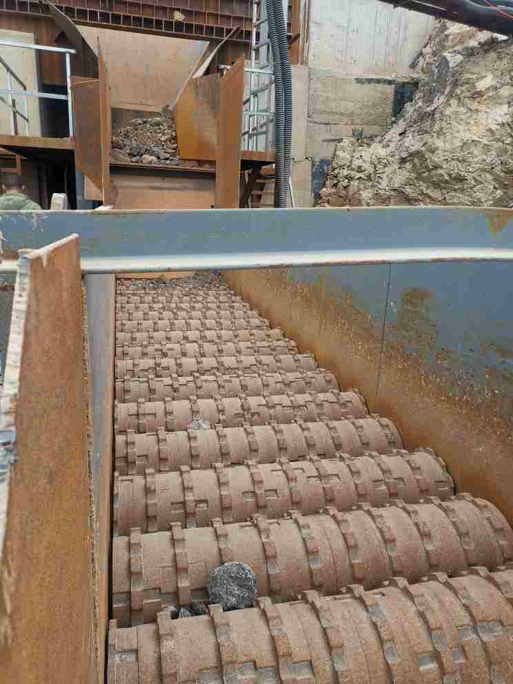 由于筛轴是按不同的工作角度布置的,所以当物料在工作角度较高的位置运行时速度较快;当物料在工作角度较低的位置运行时速度较平缓。两种不同速度运行下的物料,在筛面某一位置相汇时开始做轴向运动,这样就使物料均匀地分布在筛面上,达到了提高筛分效率的目的。滚轴筛的筛面由很多根平行排列的、其上交错地装有筛盘的轴组成,滚轴通过链轮或齿轮传动而旋转,其转动方向与物料流动方向相同。为了使筛上的物料层松动以便于透筛,筛盘形状有偏心的和异形的。为防止物料卡住筛轴,装有..保险装置。滚轴筛全部为座式,有左传动和右传动之分。物料从入料口进入筛箱后,由于前5根筛轴和水平成15°大夹角,物料开始在自重和筛片转动的双重作用下 以较快速度向下移动同时进行筛分,此为初步粗筛分阶段。大部分物料经此阶段后被筛分完毕并平铺在整个面上;当物料进入后5根筛轴以后,由于筛轴排列近乎水平,筛轴和水平成5°,物料前进速度减慢,此为筛分的精筛阶段,物料经此阶段后小于30mm的粒度已被筛下,大于30mm的物料经出料口被送入碎碎机进行下一步破碎。