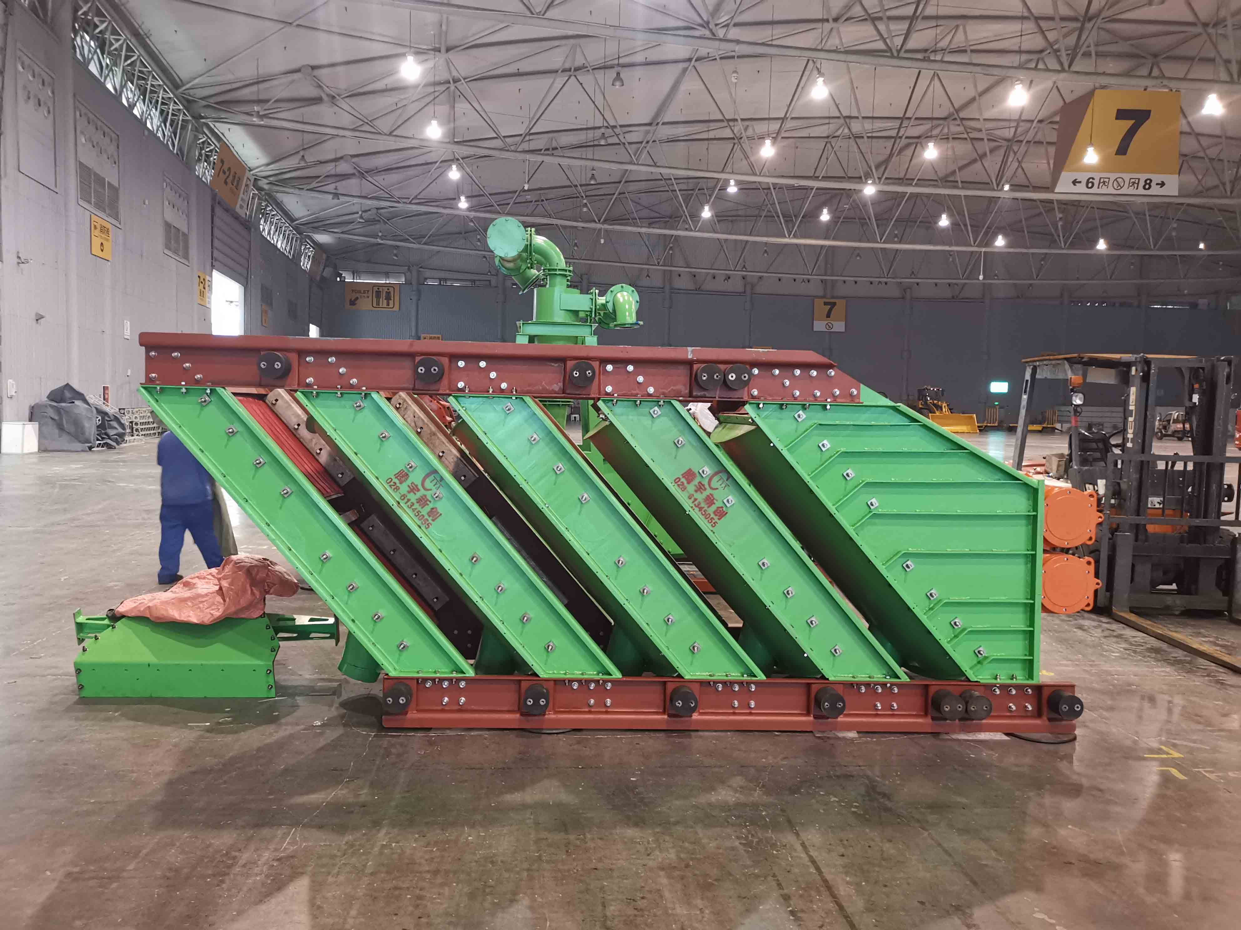 1、该设备占地面积小。可实现多路并联,全部筛框采用叠加的结构形式,扩展了原有的多路给料原理。把多个筛机的有效筛选面积合并成一台筛机的占地面积,提高了筛选的效率和处理量,使整个设备显得更加紧凑,也让生产现场的安装增加了灵活性。